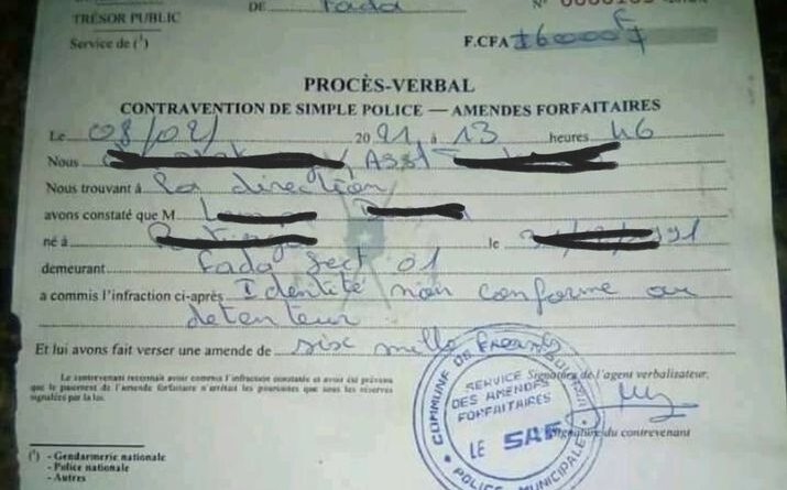 Depuis la journée d’hier, a circulé sur les réseaux sociaux au nom de la Police Municipale de Fada N’Gourma, une amende pour raison de « Identité non conforme au détenteur ». Une infraction créée à dessein pour amendée une dame détenant une carte grise dont le nom n’est pas le sien. Cette infraction parait être un abus de pouvoir vu qu’au Burkina Faso, aucune loi n’interdit l’utilisation d’un engin ne nous appartenant pas.